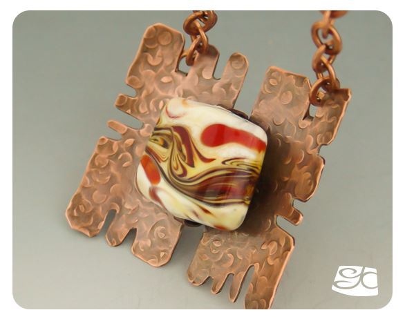 Beautiful setting for a pillow bead. It can be strung on a chain as described