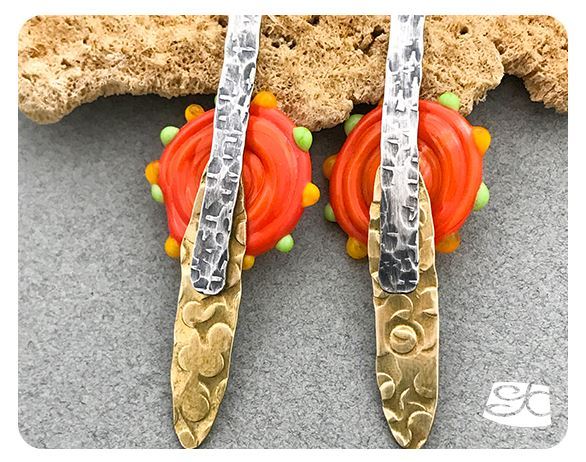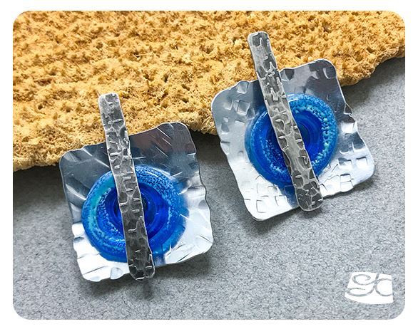 Combine metals, texture and colored glass to make unique one of-a-kind earrings.